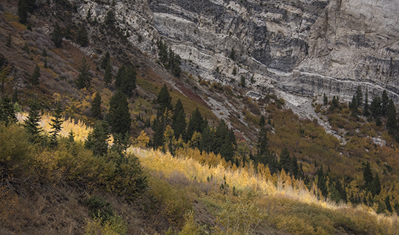 The light aspen is where the sunlight was hitting it in a narrow line, so the rest was meant to be darker. I liked the thin line of sunshine. I'll attach the original picture for you so you can see what I was thinking about. |