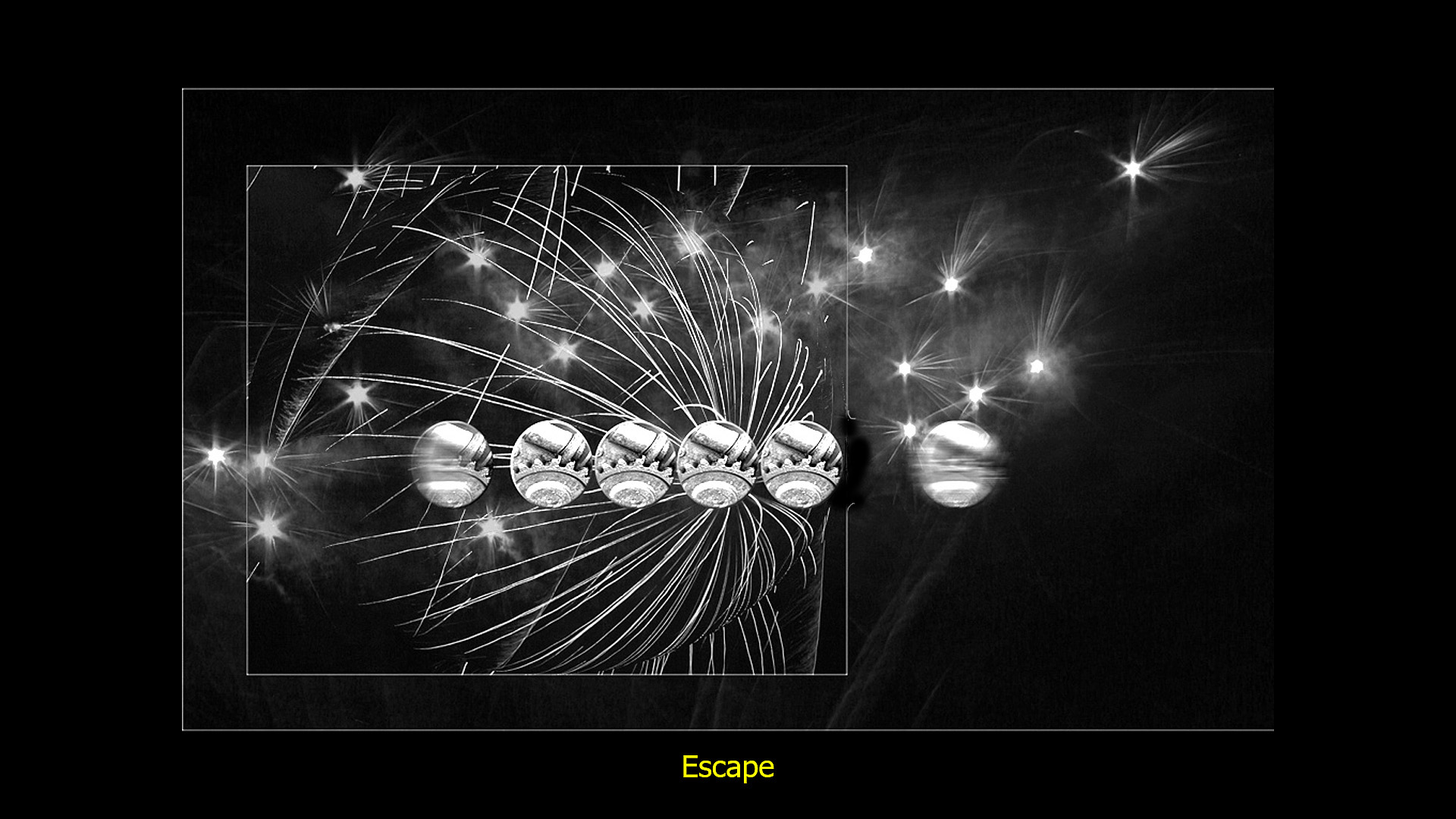 I love this picture. So creative. The only thing I would like to see is a break in the frame holding the spheres inside so that one actually can escape, either by breaking through or finding an escape route. I am showing what I mean.