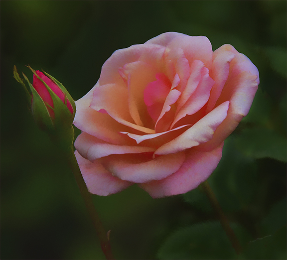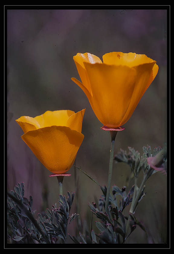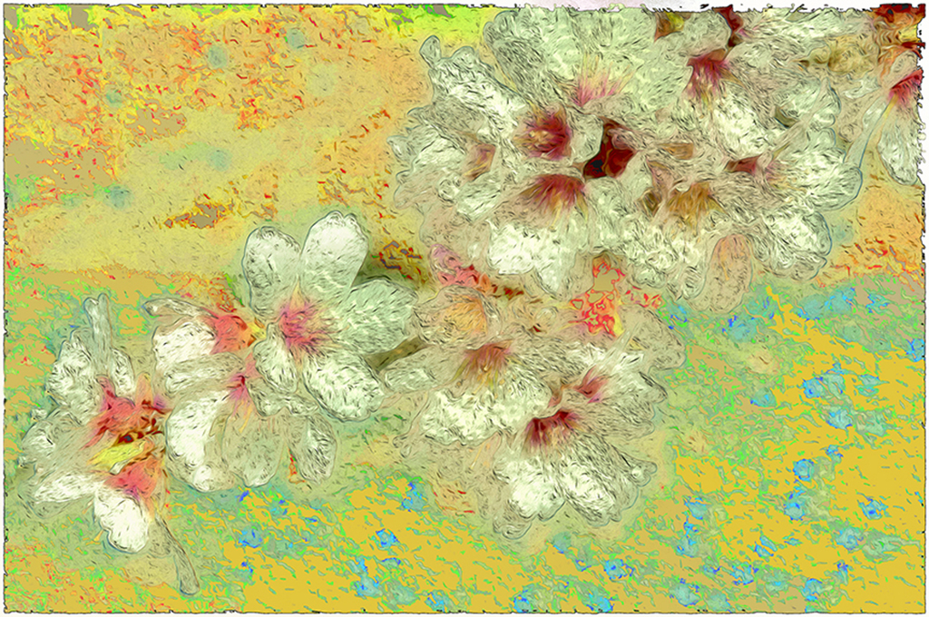 Great job with the extraction ion the flowers from the rest of the original picture. Adding the colorful and somewhat opposite in the color wheel for a background and the texturized presentation really makes this stand out. Very well done. A beautiful final image. |