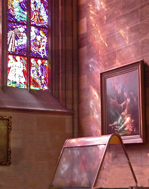 It is indeed an interesting abstract, but your title could possibly reflect that better than what it actually was. .Maybe Abstract with Blue. or some such. I like the triangle of red objects. Also your eye is being something unusual and taking the photo. Working with it in Lightroom got rid of sone of the small spots that made the image too complex. Good idea. |