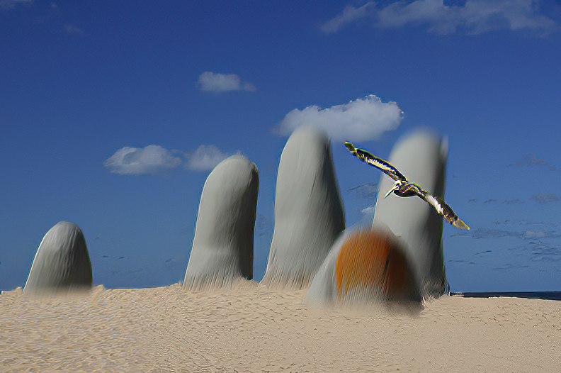 Jim, This is an interesting. piece of art. somewhat like my hand in the sand, it is definitely someone else's artwork, but I like the idea of changing the background and making it more your own. The colors are great and there is a lot of impact. Maybe you could do something more to the "person to make him look less like the original.
