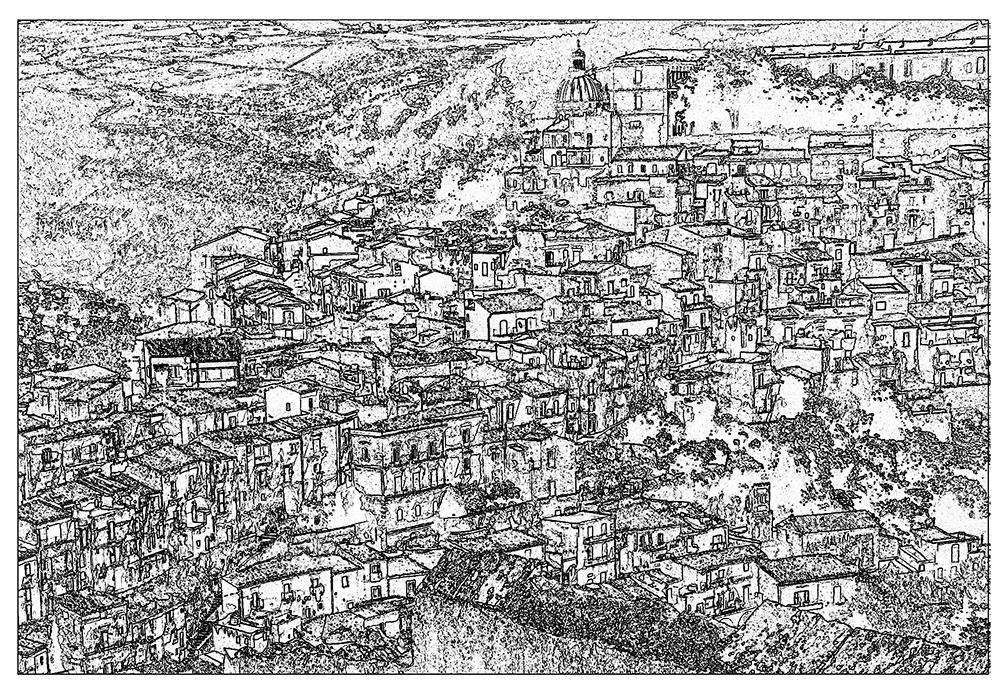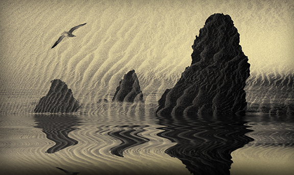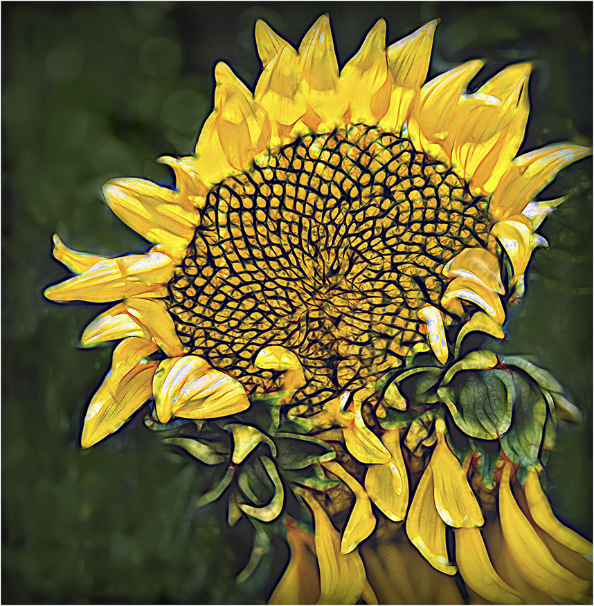 This is so much better than the original. You use of a sketching tool really takes this from a muddy, uninteresting original to an n image of what really brings out the turbines. I'm so glad you cropped way in and limited the final image to a few black and white contrasting sketches. Really nicely done and great that you saw the potential in your original.