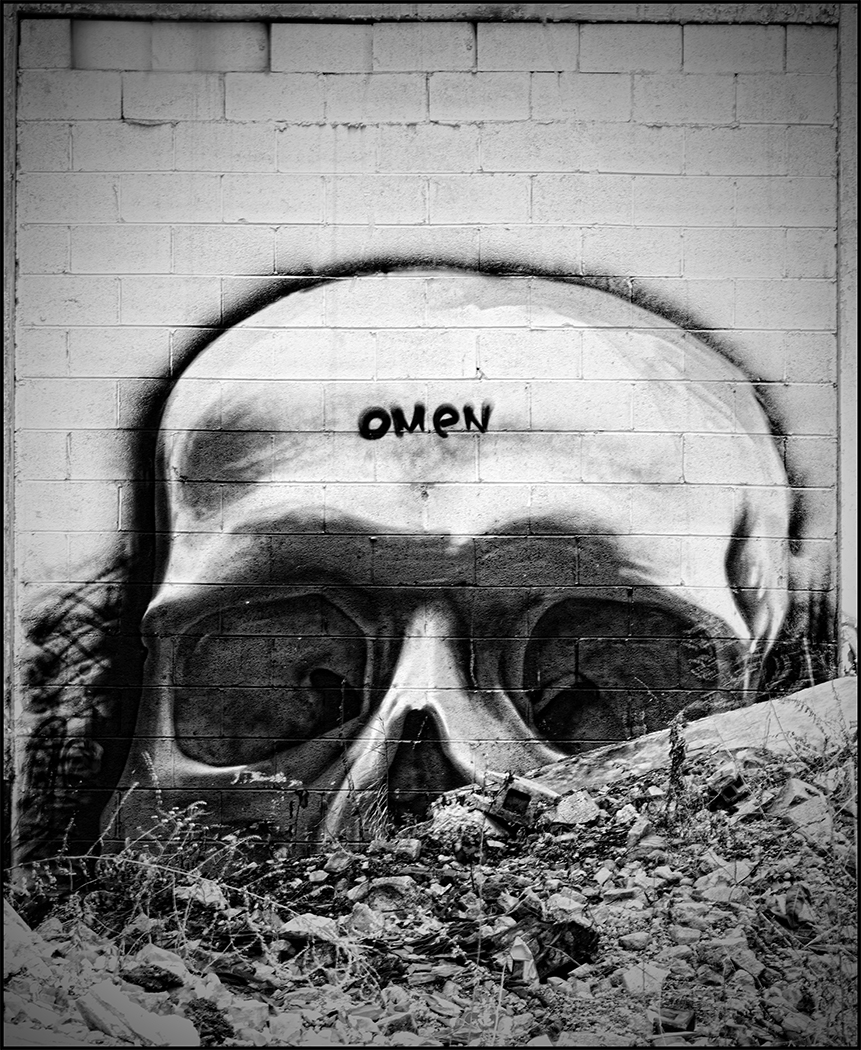This is one of the gang/wall paintings, so the junk in front is what there is. I tried taking out the missing cement blocks and cloning out the danging wires. and added a little shadowing on the edges. |