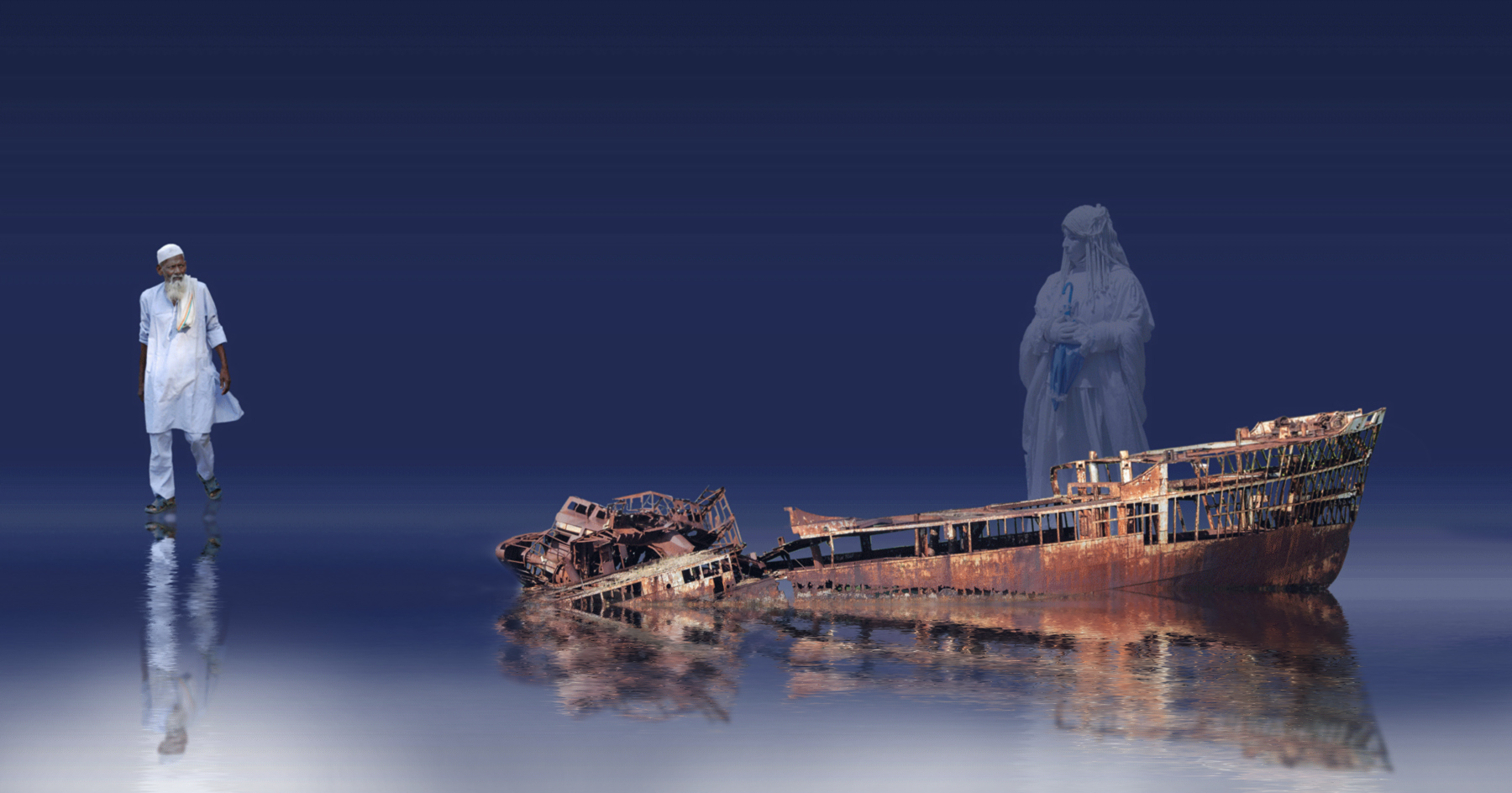The ripples were done very quickly - if I'd had more time I'd have made them more consistent across the image. I had to use three different horizons for the various parts of the image, but with time they can be blended to make it work.