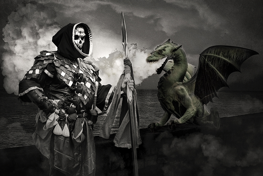 I agree with the previous comments about the dragon and the overall B&W - I've brought the dragon back in at a lower opacity - What do you think? |