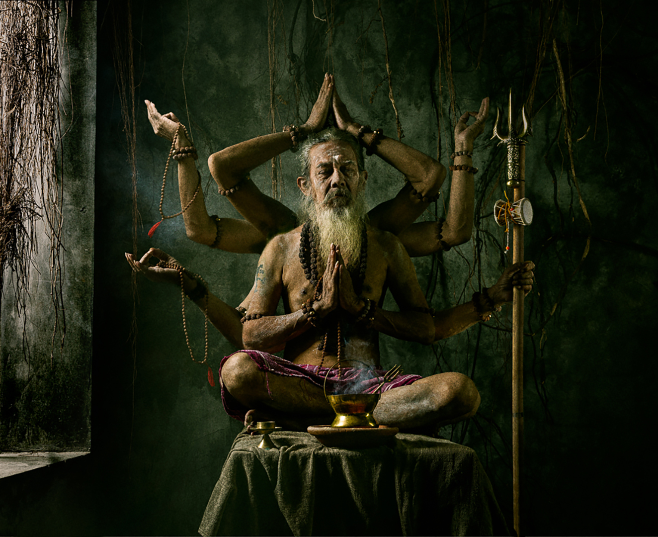 I felt that the trident and staff were a little distracting so I darked them usingf the burn tool. |