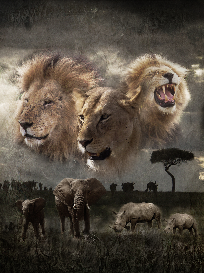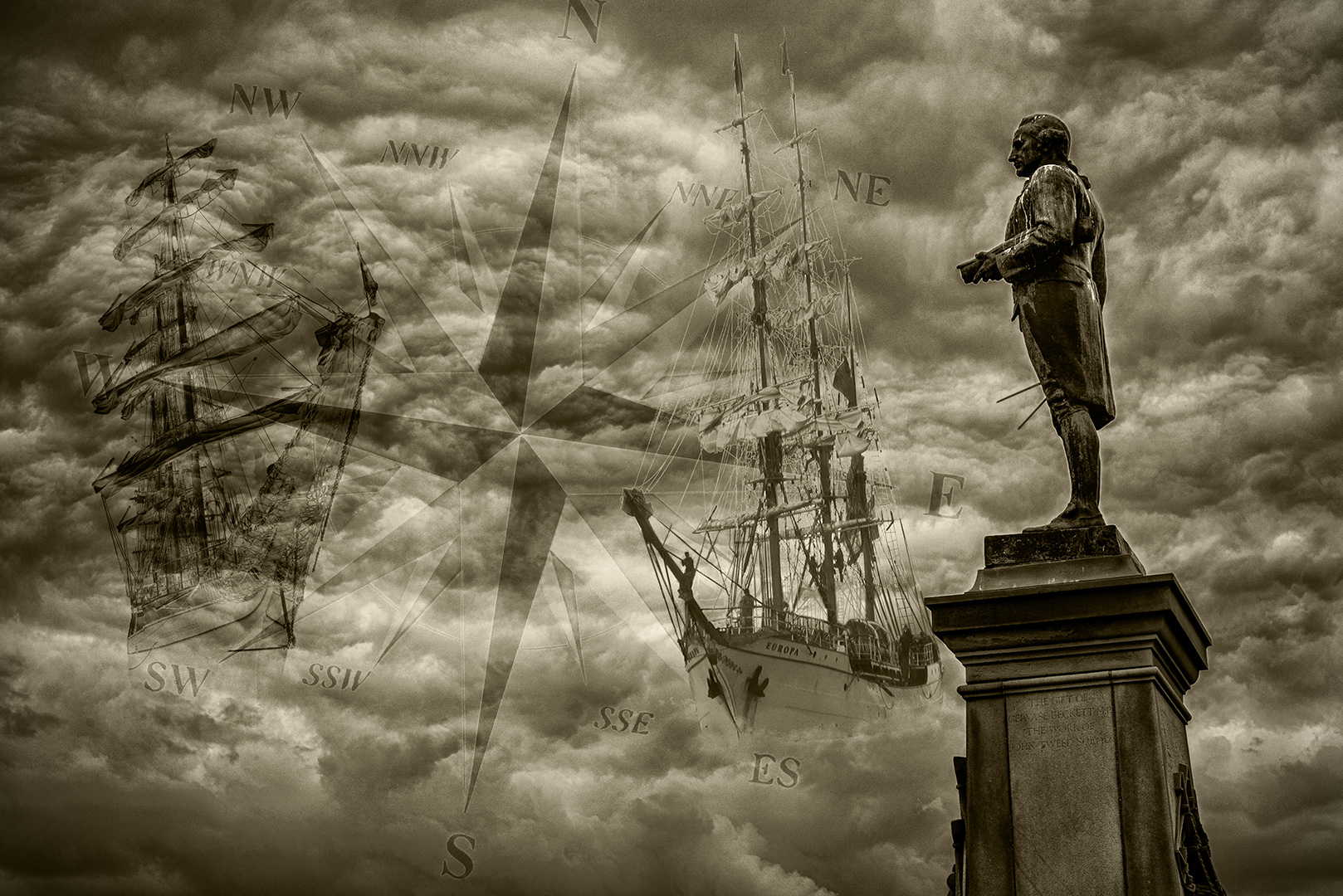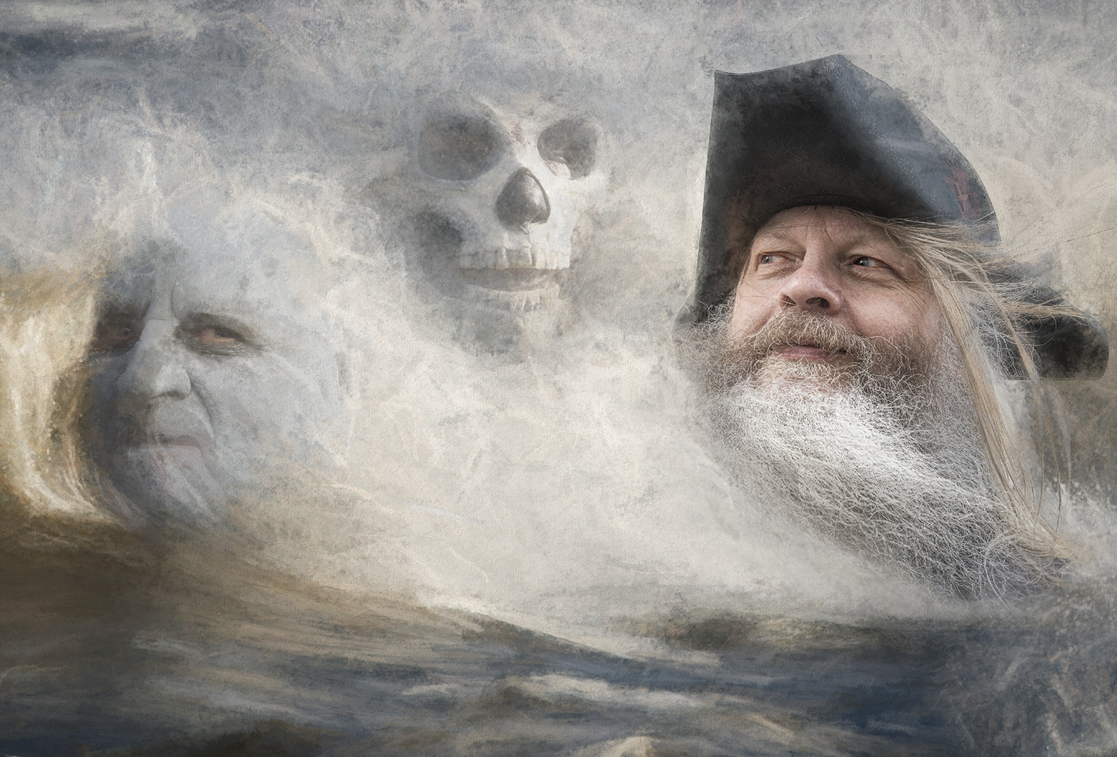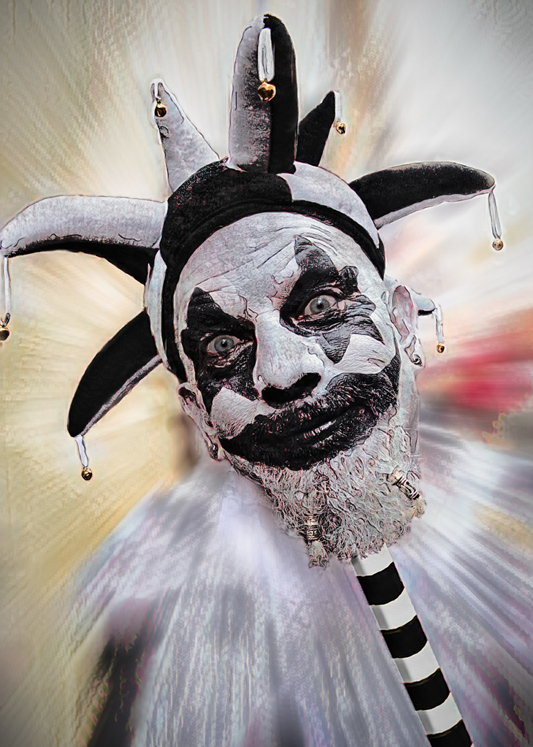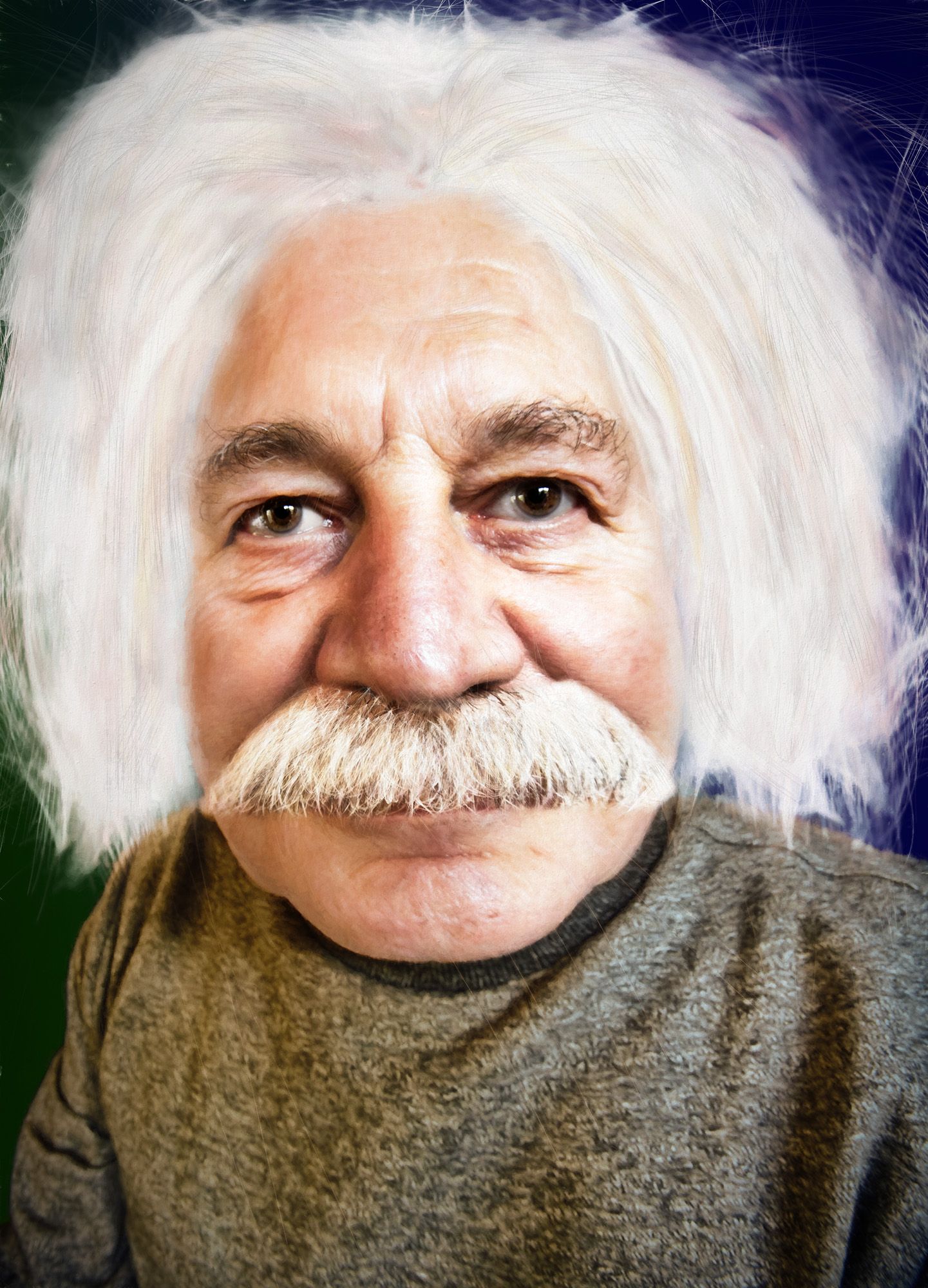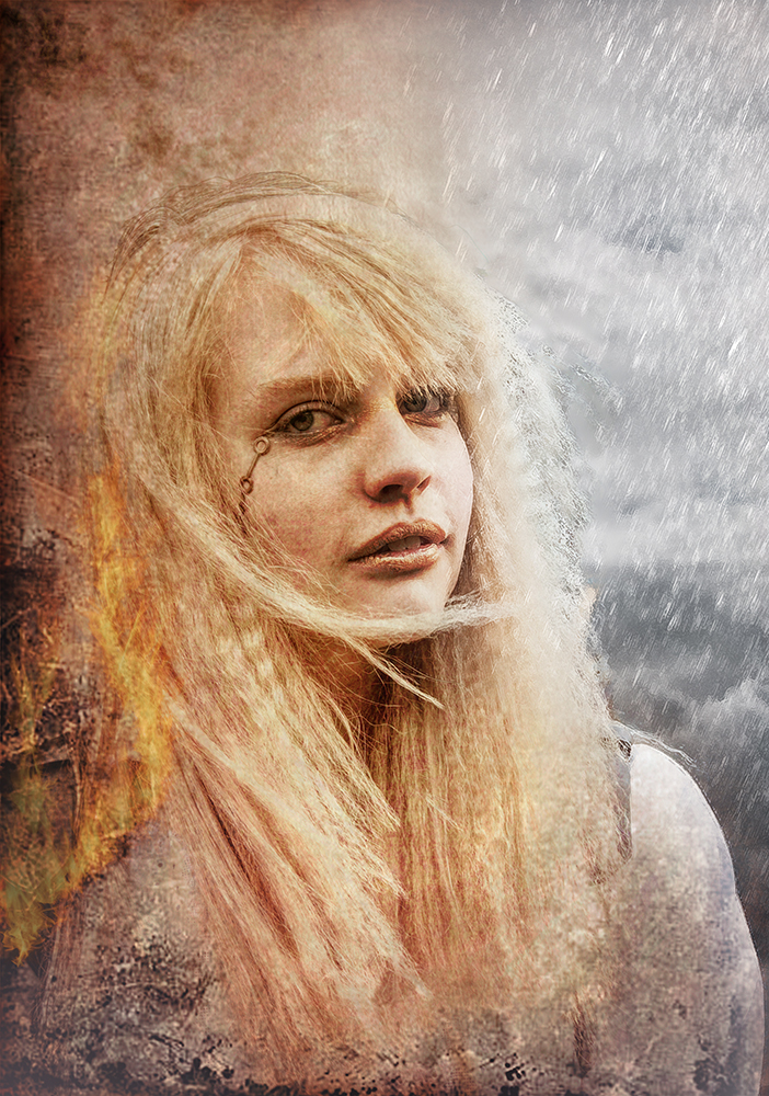 Having seen the previous comments, I like the idea of combining the monochrome with an enlarged eye in colour. I've also changed the background using a clouds image, a gradient and zoom blur. Some people just don't know when to stop, but I couldn't resist! |