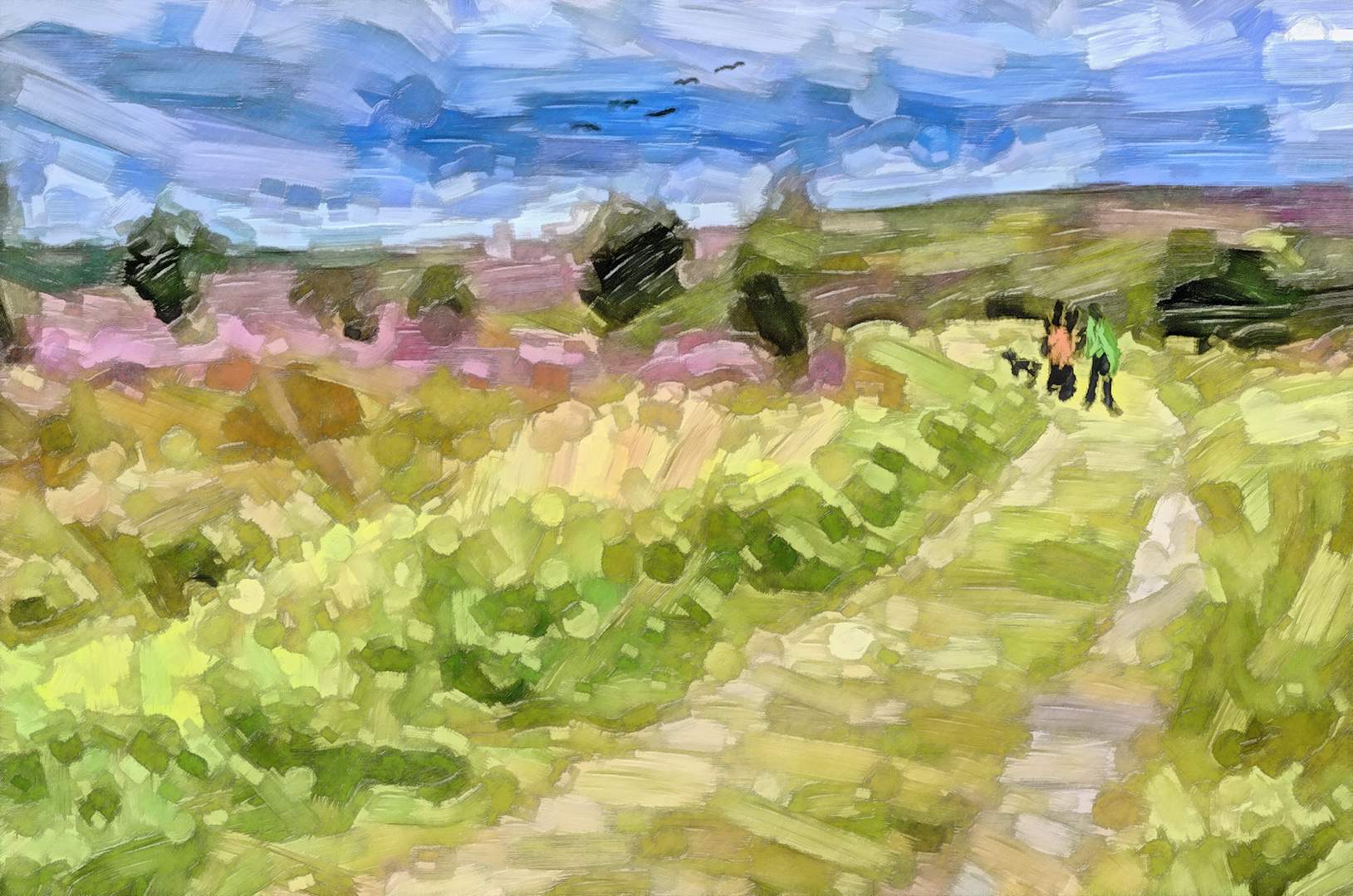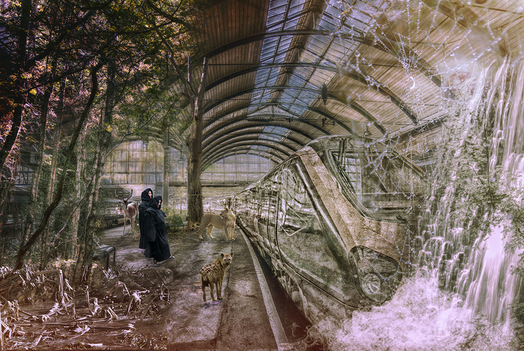 You've obviously had fun playing with blending modes and filters, to create this entertaining image. I like the overall image which speaks to me of the immersion we see every day with mobile phones - it's clear that these two are going to walk into each other while the others are watching and waiting for it to happen. Well done.