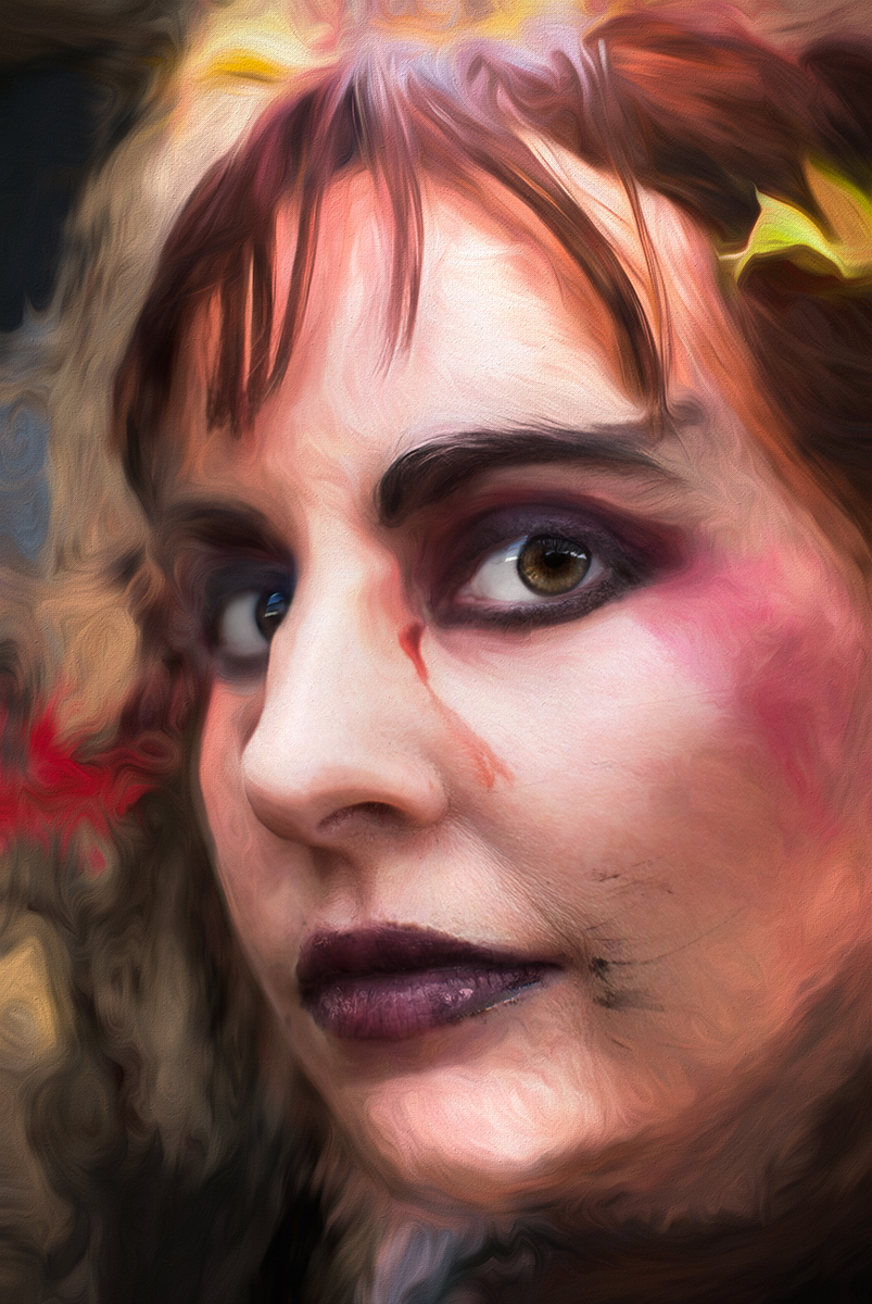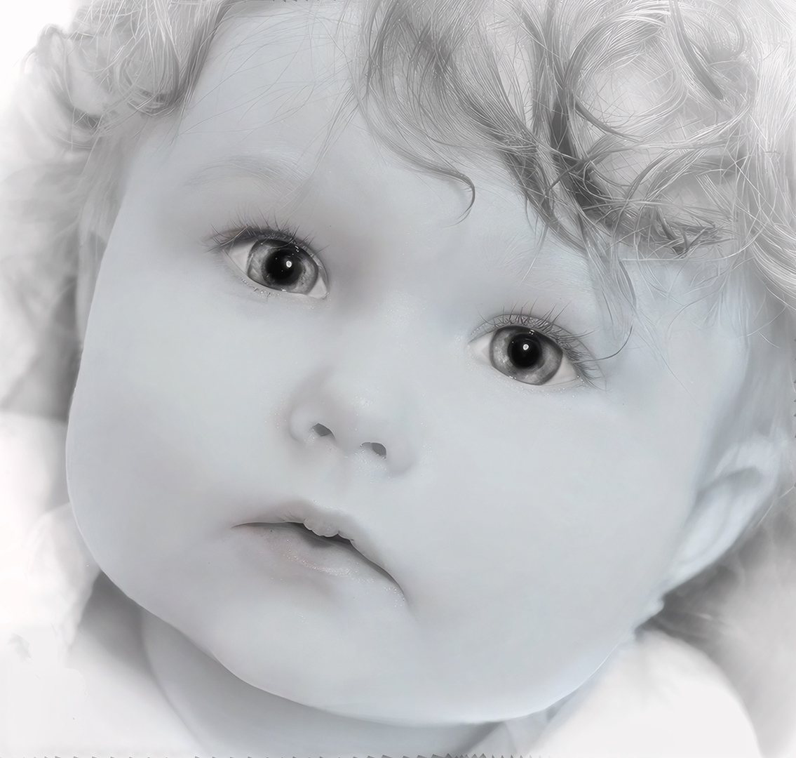 I've gone a step further with the crop, used Portrait Pro to accentuate the eyes and added a white vignette - probably a step too far, but I couldn't resist it! |