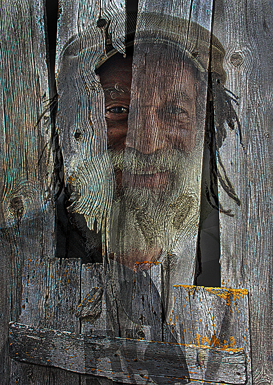 Love the door and Raymond. Flipping the door was a good idea. I think I would have cropped Raymond right below his beard as Jan said. Maybe using a mask to let more of the dreads show would be helpful. Also the fence is very bright. Darkening the highlights might make Raymond to stand out better. |