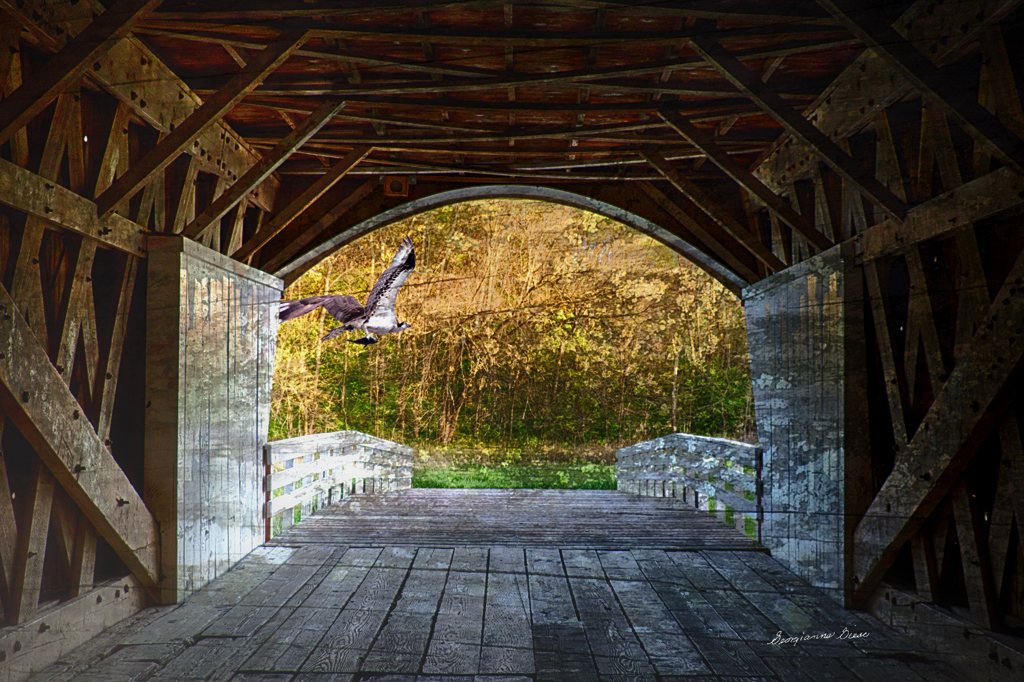 Well done, Georgianne, covered bridges are always a challenge. In my opinion, the overall image is slightly too bright, especially the bright areas on the left. The inside of the bridge should probably retain some mystery. I agree with Steve that the osprey should move away from the bridge. Thanks for the history. |