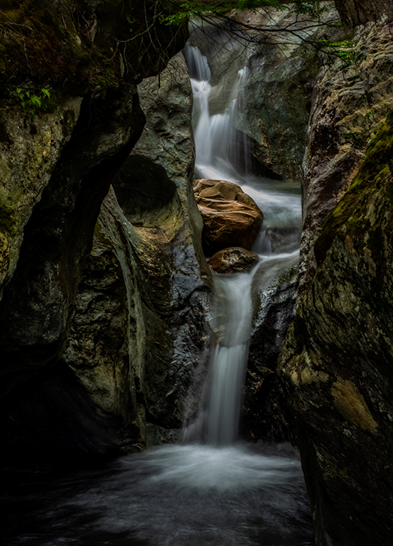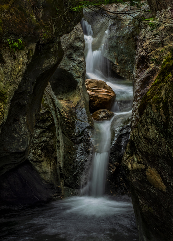 I have opened the darkest shadows on the left. The falls and red rocks remain as the focal point, but there is some detail in the black rock chute. None of these images matches my original TIFF file from PS in Adobe color space. That file has detail in every area. When the file is reduced to 8 bit and srgb color space as a JPEG everything changes. This file is the closest that I can reach. |