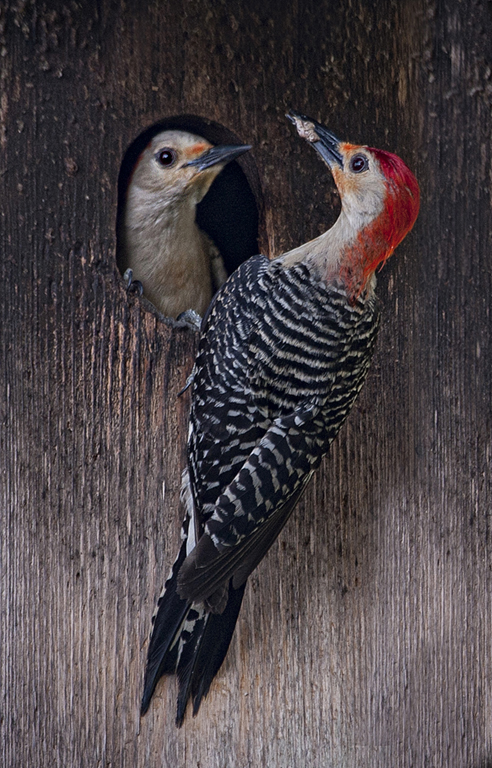 Wonderful capture, Mervyn. The male bringing food in his beak makes the image. You have a great angle on the male and good visual on the eyes of both birds. I used the sharpen tool from PS at 63% to sharpen up the female. |