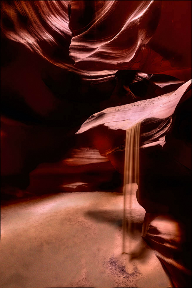 Your composition is beautiful, Brenda. The sand falling on the right side is perfect. I feel like you lost detail in the background because it is so dark. Using the Adobe Camera Filter did not help with the background detail. Increasing clarity did improve the sharpness and detail in the image. Great job with trying conditions. |
