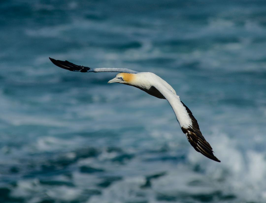 Nice flight image of the gannet. It is a pretty big crop. I tried to improve the eye-sel color-neutral less black then duplicate layer. |