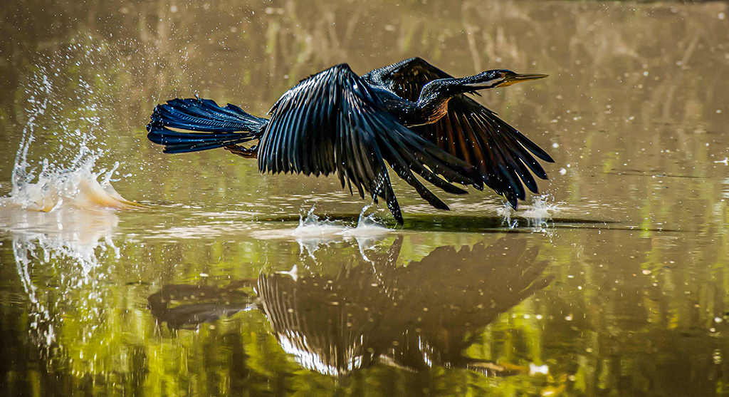 Fantastic capture of the Darter skimming along the top of the water. You have good definition in the feathers of the outer wing and tail as well as detail on the head. I do feel that the bird is somewhat too dark. So the Camera Raw Filter was able to increase the detail in the bird. There are no distractions or over exposed highlights. You have a well defined reflection and nicely blurred background. |