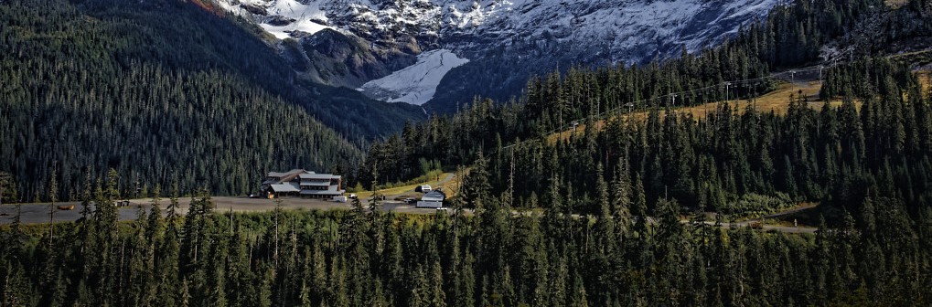 To me the snow covered mountains and clouds in the sky dominate the image. I would have cropped much of these and preferred a panoramic view. |
