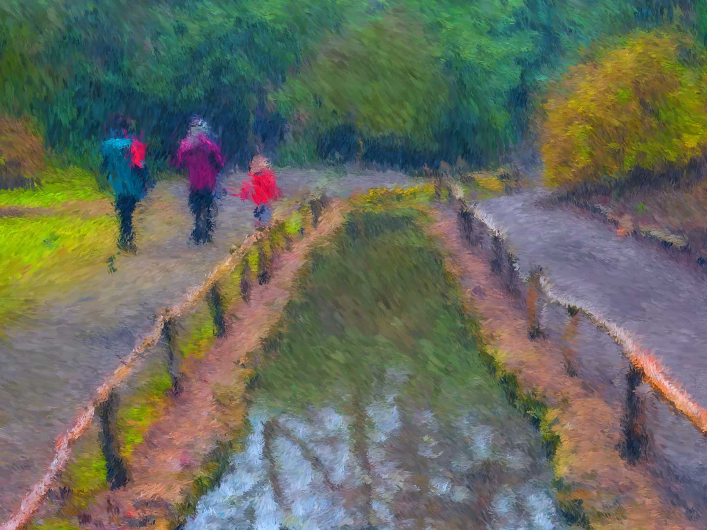 It's a lovely effect on the green trees. I am less convinced about the blues and reds in the centre, and the reflection of the red panel is a different colour which looks odd. I also don't much like the yellow grass on the left hand side. But overall a very pleasant image (which could be even better). |