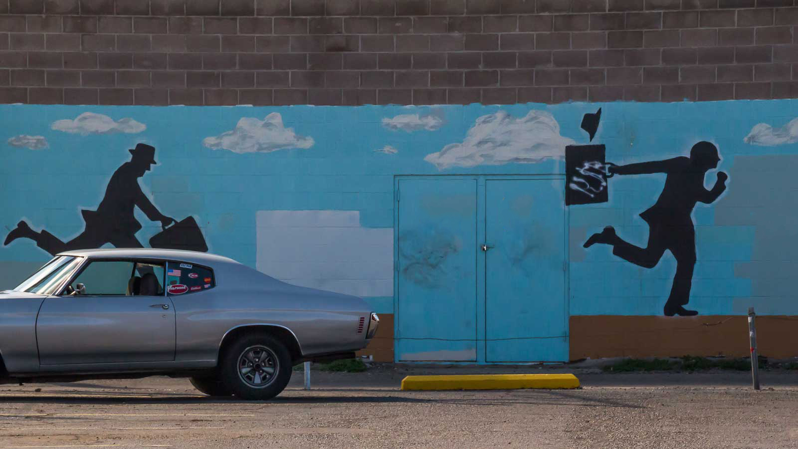 I am not sure about including the pedestrian and I would be tempted to clone out the hood of the right hand car. Also, I would lighten the shadow area of the stucco house.