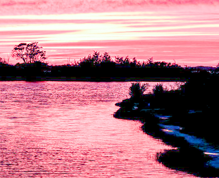 Dramatic sunset. Its a matter of personal preference but I think the treatment is a bit over the top (OTT). it would have been nice to have some reflections of the trees in the water- this is missing. I've fiddled with the pic in Lightroom. I don't think the empty space on the left hand side really adds anything. To me the shot is underexposed by about 2 and half stops. I also adjusted for shadow detail and auto white balance, then added some dehaze and increased the orange tone. I've also cropped. What is odd is that after all that there appears to be some blue water in the shadows on the right hand side which probably doesn't add anything but is certainly different.