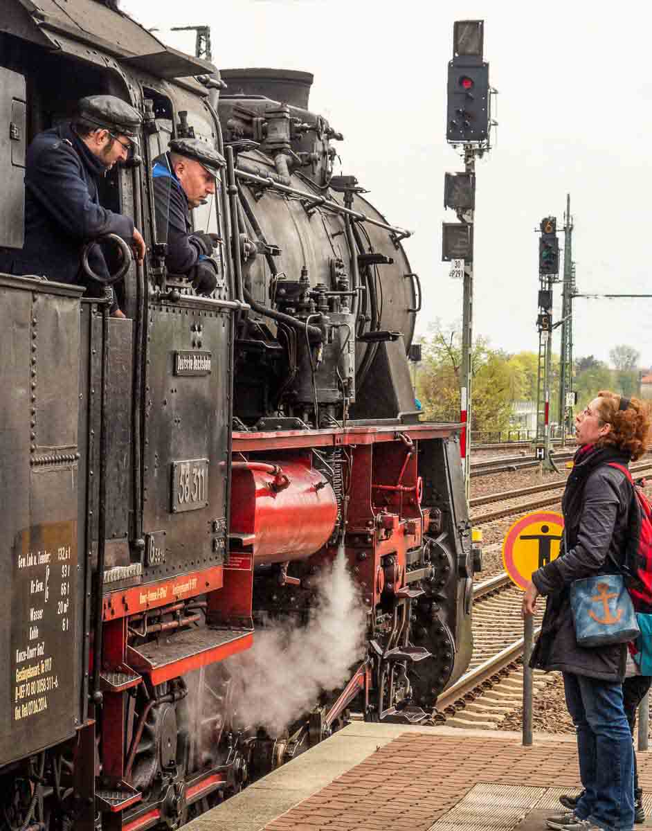 Andrew, I like the interest of the engine operators and the woman, the puff of steam, and the engine itself. However, I thought the wires in the background were too busy. In PS cc 2018 in a a few minutes with the spot healing brush I was able to clone them out. What do you think?