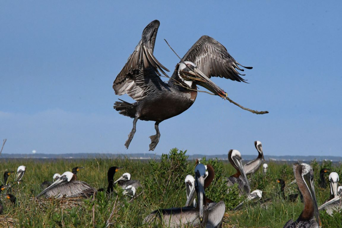 Well Catherine, you always submit something eye catching. I think of a huge jetliner ready to touch down when I look at this. Great capture! You have the bird and you have the locale setting with the nesting cormorants and pelicans below.