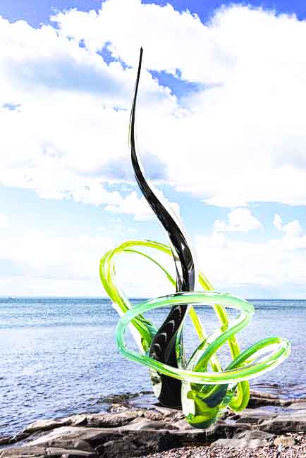Now examining the individual elements, the varying copper tone of all does relate them to each other. All, except one, are verticals which does resonate with me as I am partial to verticals for some unknown reason. Then I look in detail at each element which all contain circular or elliptical elements.