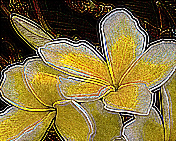 I did not see that, but could it be from the Burn Tool, when I was toning down the brightness around the flower. This treatment probably needs a Mask expert. Sorry about that. |