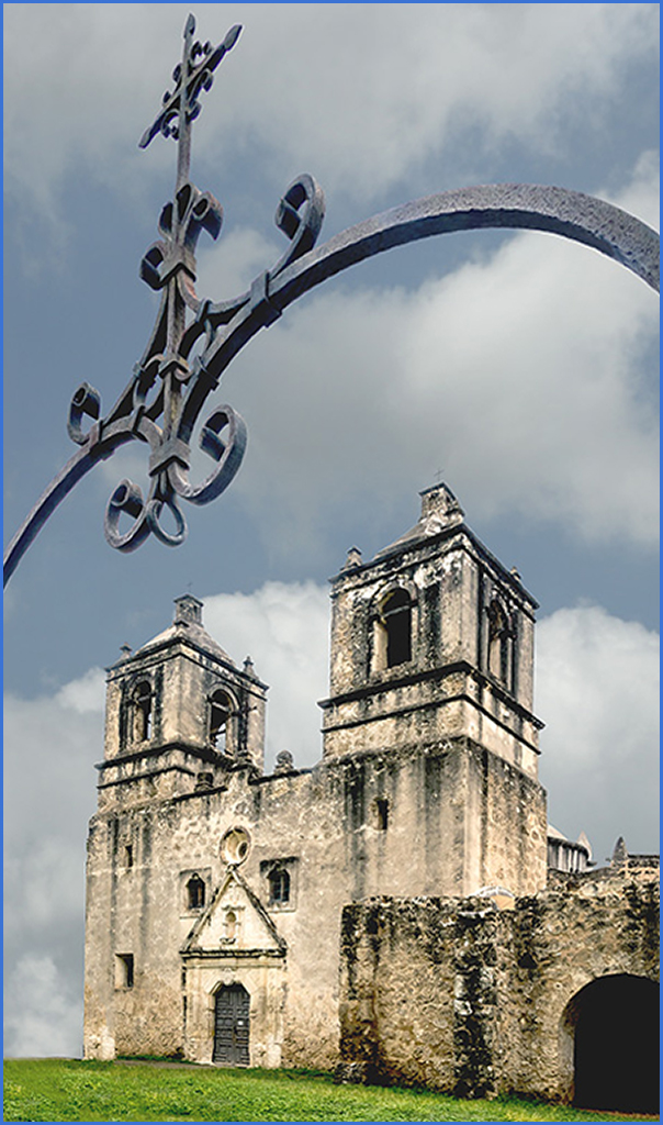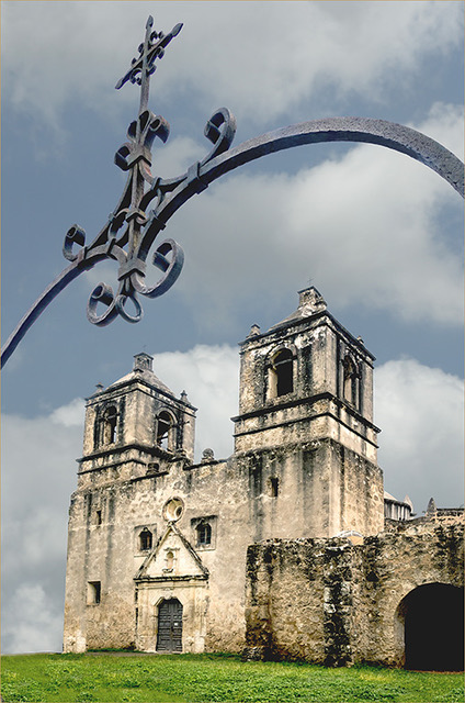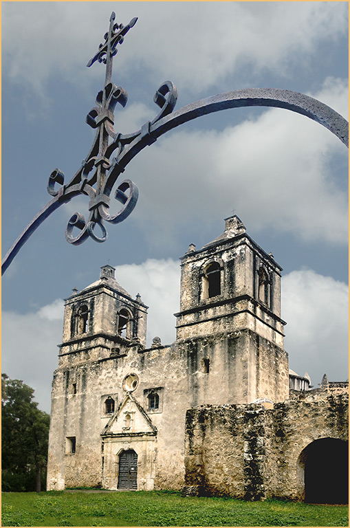 Okay, if it is trees you want, trees you will have. I took these trees from another Mission Concepcion image: Layer > New > Layer Via-copy > Move with Move Tool while holding Shift Key > size to scale. Mike, how is the grass now?