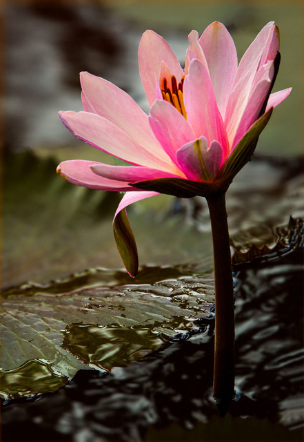 Excellent selection work Marti. I love how you brought out the color. I think this would be more realistic with a complimentary background color. It would also help to bring out the stem. Here is what I did: Using the original, I selected the flower, inverted and cloned out all the orange flowers and filled some black areas, then toned down all the bright areas with the Burn Tool, then applied the Gaussian Blur and more toning down where needed. I also extended the bottom with the Canvas Size and Fill.