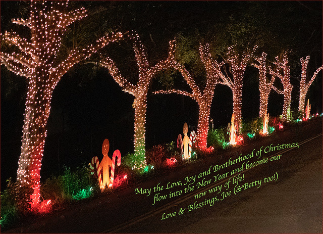 Jerry, since the only illumination came from the lights on the tree, the streaks recorded during the few seconds of the zoom, because they were the brightest parts of the scene. The dimmer lights have some streaking, but not as strong as the others. The tree, the gifts and the rest of the scene, were too dark to record during the zoom time, but they recorded during the remainder of the 25 second exposure, therefore, showing no zoom effect. At least, that is the way I see it. |