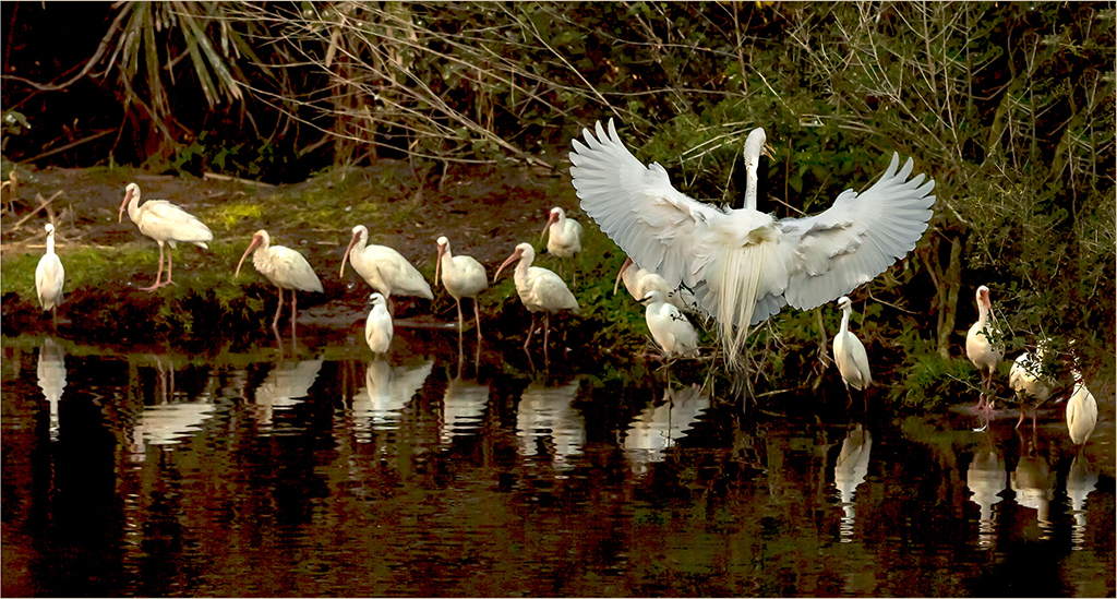 Yes Jerry, I fully agree with you. What would make this perfect is that if the egret was looking in the same direction as the ibises. However, I feel that with the placement of the main subject on the right, creates a more pleasing composition. |