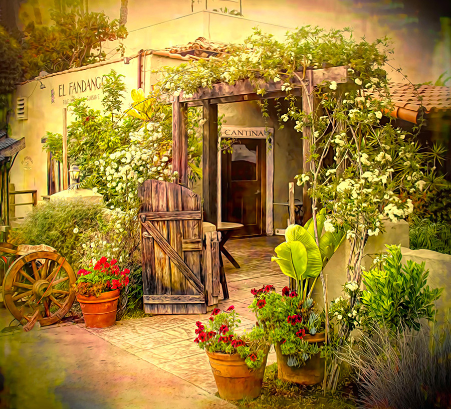 Al, I have no problem with the warm and green tones. I think they work well with this image, but as much as I feel that the slanted look works well with some subjects, it does not give me a comfortable feeling with this one. I just straitened the image with the frame of the door and at once, it said: "come on in!"