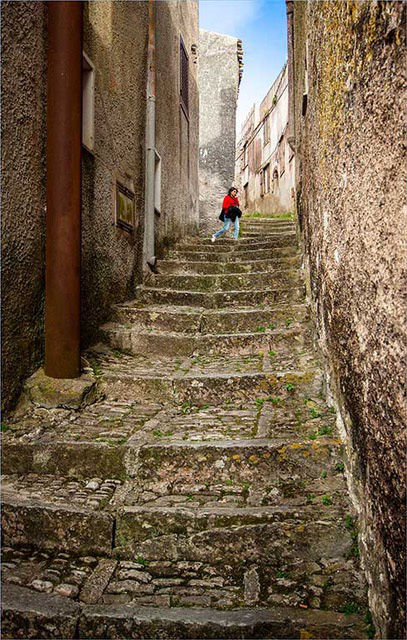 I agree with the composition and the cropping. I think you can improve on this story-telling image to make the figure stand out more by darkening the boardwalk and the fencing. Also you can easily eliminate the distracting electric wires and poles by cloning parts of the available trees over them. |