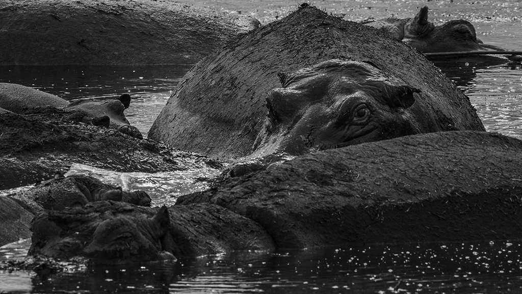 I feel that the image is rather busy and is lacking in contrast - I'm guessing that the hippos were covered in mud.
