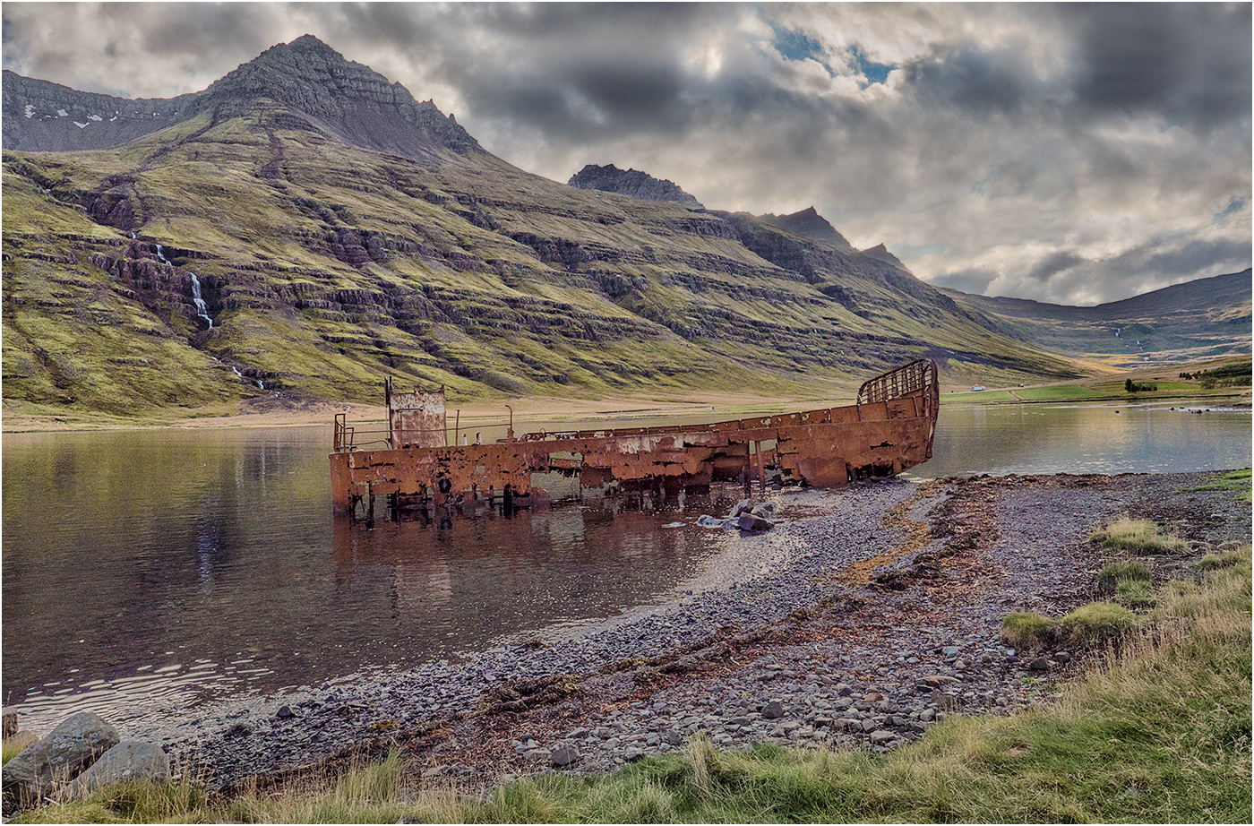 I regret to say that your edit is OTT and does not sit easy on the eye and looks very artificial. I see where you are coming from, but the wreck is, in the main surrounded by lighter tones.