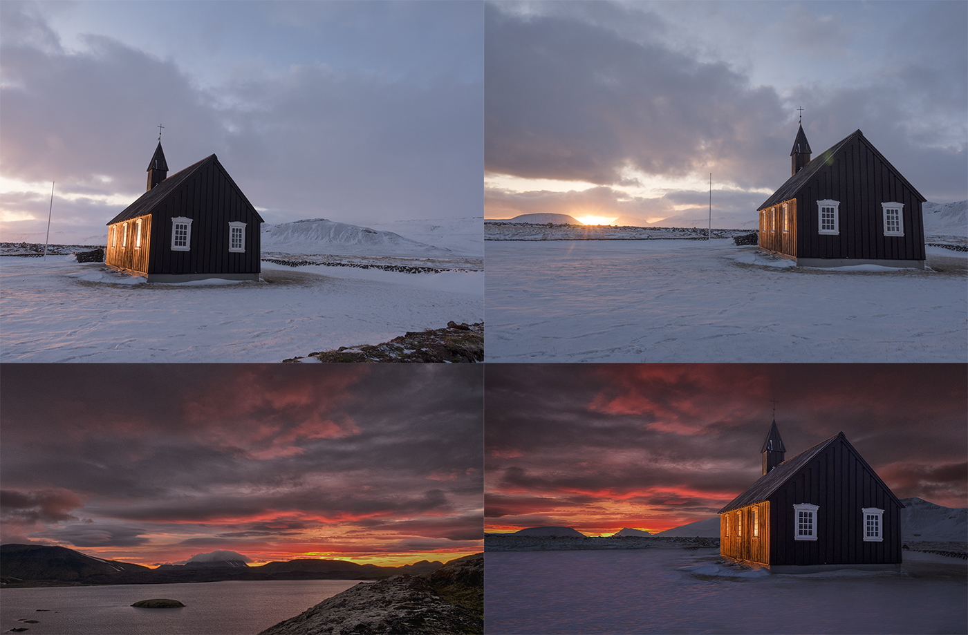 The 3 images which were combined to produce the finished colour image are shown below. As I noted in the description the mono version had a cross from the churchyard added as well. |
