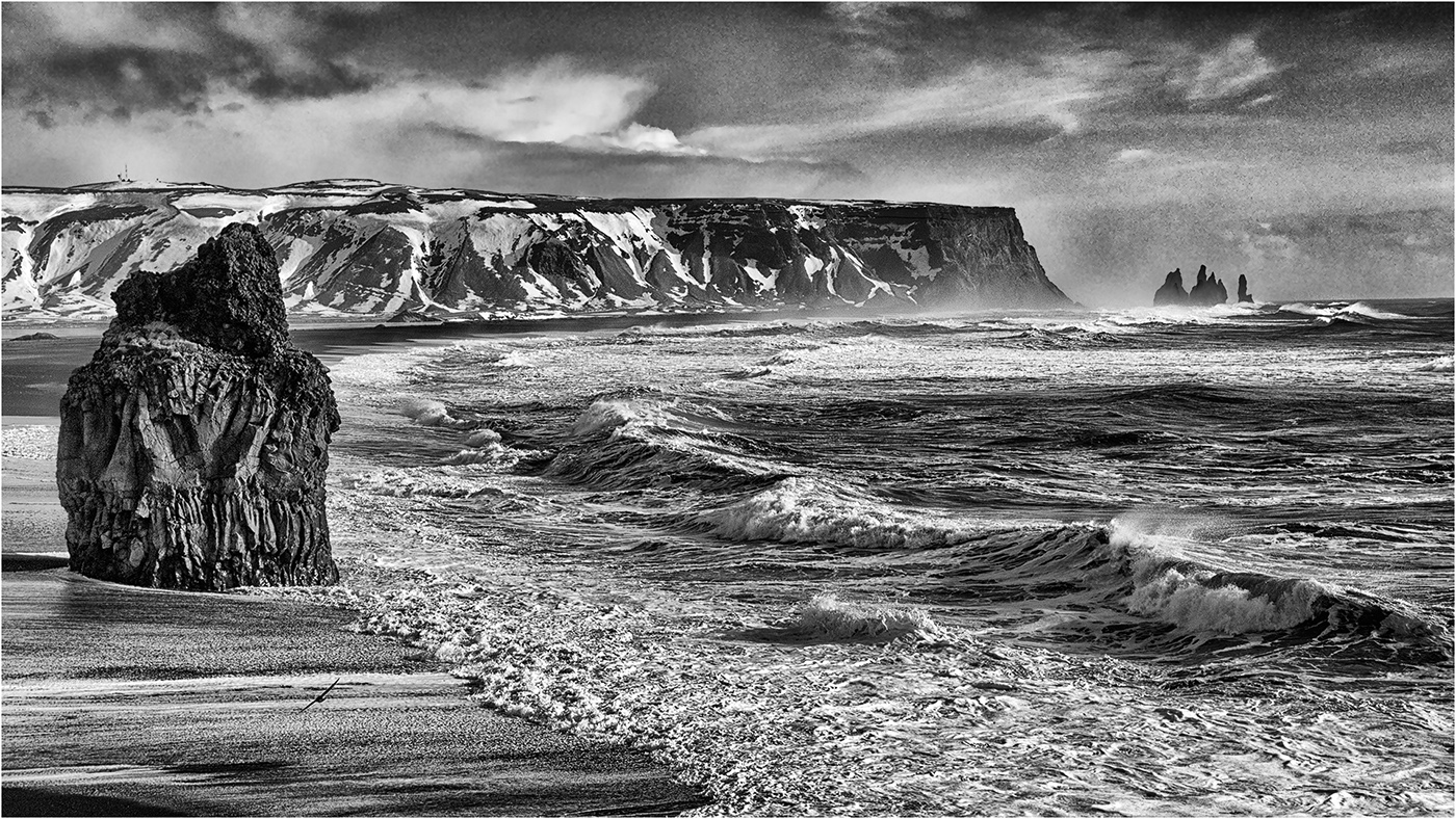 Nick - a location I know well having visited Reynisfjara Beach on two occasions. Nature has provided the ideal composition with the surf line leading the eye towards the Vik sea stacks and the volcanic plug provides a point of interest in the black sand beach.