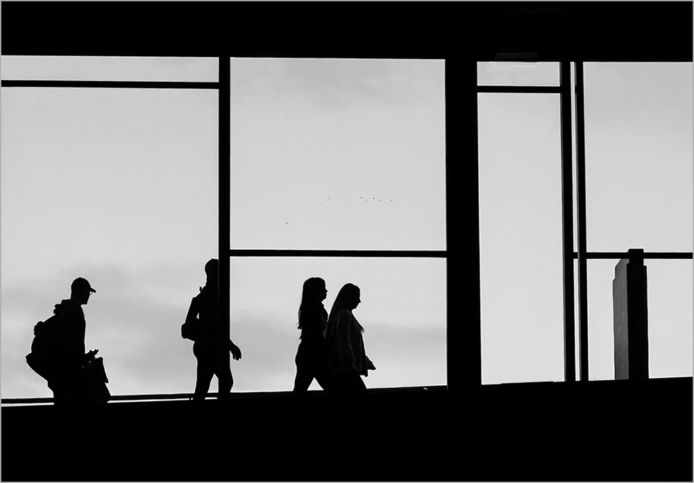 Hi Ian: I like your silhouette image which shows people off to somewhere. I agree with Peter's comment about the person on the right hand side. I used my editorial license and removed that head. |
