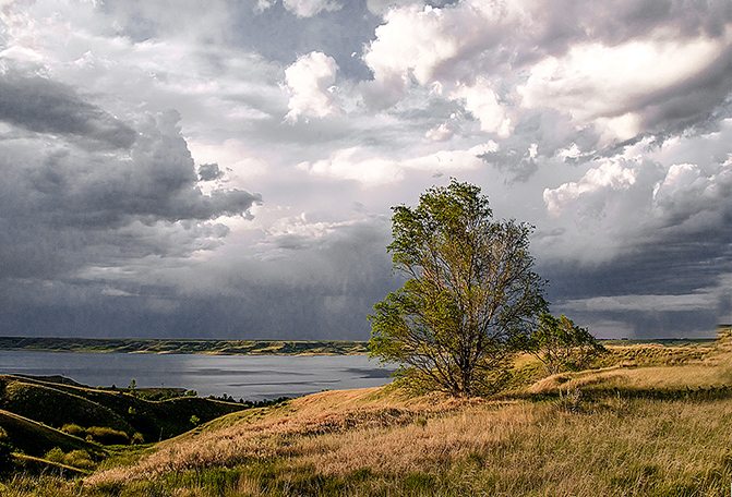 Lovely scene. The clouds are spectacular. There is a white line down the right side that I would like to see go away. Maybe gently darken the lower right hand corner just a bit as it draws the eye away from the rain and clouds. I took the liberty of darkening the corner for comparison. |
