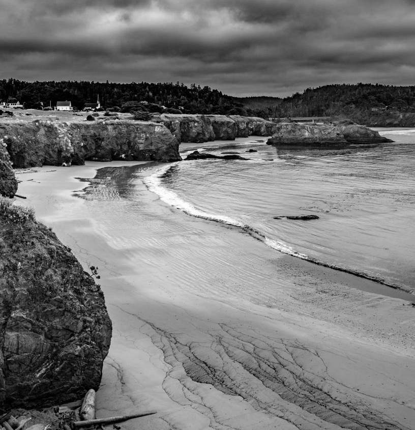 A lot of these coastal images are beautiful but ordinary. Though the black and white changes the game for a extraordinary image. Good choice with the B&W. FWIW. A little closer. |