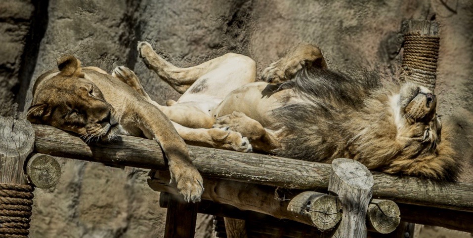 A excited bunch or another day at the zoo. Good capture! A darker back ground would give the lions some pop or resize to bring the lions to the foreground. |
