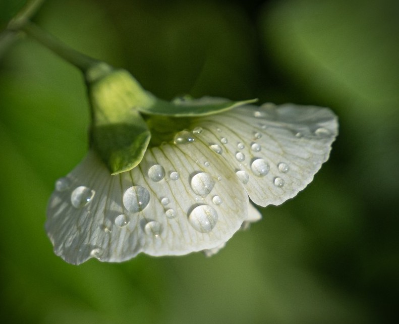 Good composition with flowing contrast from the flower to the back ground. The rain drops and flower hold my attention so I gave a tighter crop a try. I can't say it is better. Just different. |