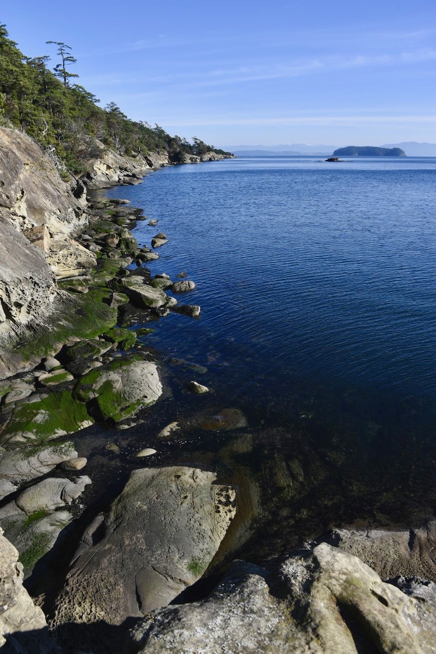 Shoreline on Sucia island as I walked out to the point along this shoreline to the place where I took the picture or something like that. |