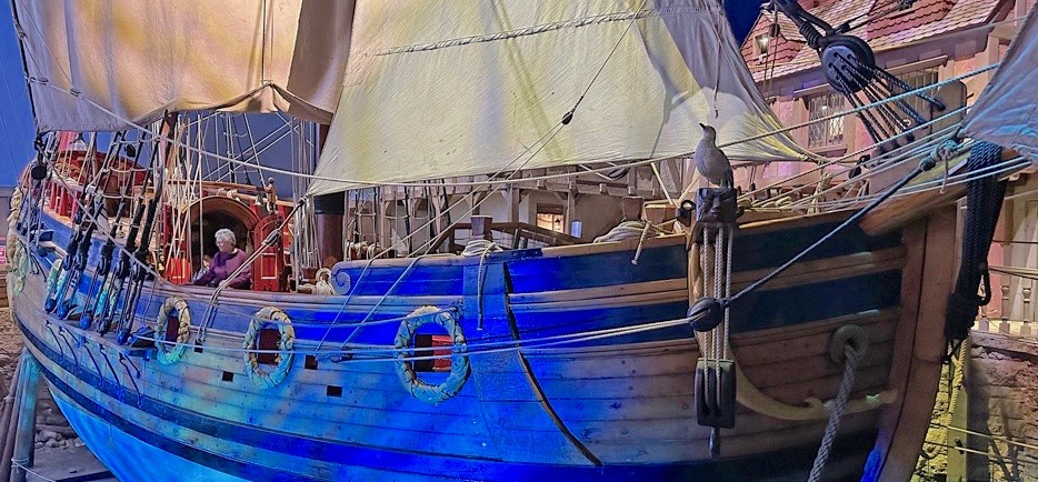 I like the bird perched on the block along with the women towards the stern who seems like she could be part of the crew. I resized the photo with those two in mind. |