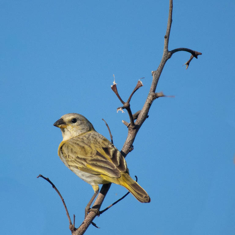 Sandy, I like the angle of the branch, the colors, blurred background, and the bright yellow! Nice job!!! I'd like to hear more about your trip! |