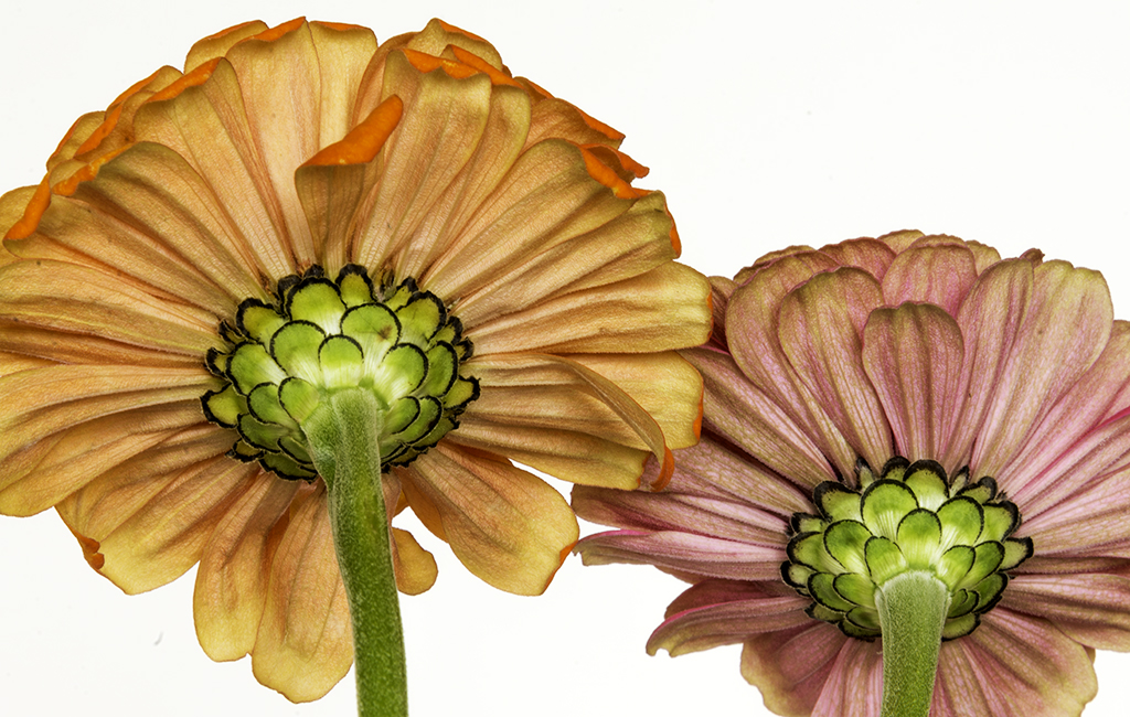 The Two Zinnias was taken with window light, a diffuser and a reflector. |
