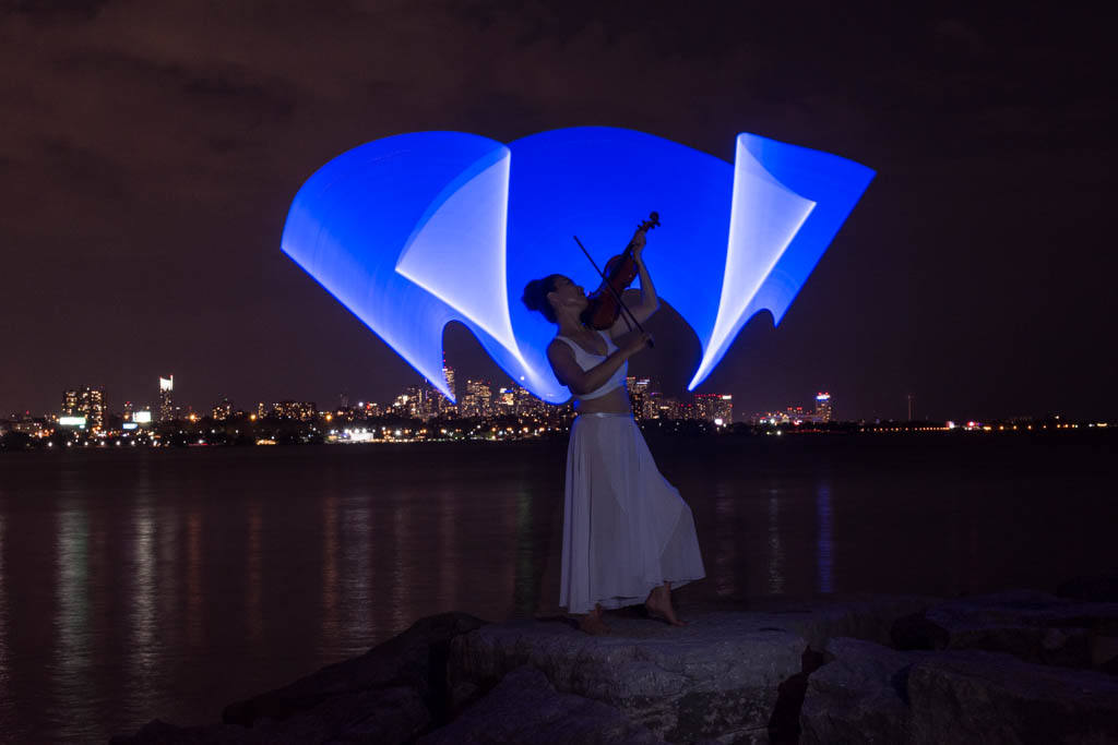 Hi Gloria, Thanks for your comments. We found the flash illuminated the person holding the light and standing behind the model. Painting with a flashlight for 2-3 secs. seems to work best. For our next outing I will try a higher ISO to see if I can bring out more colour in the sky and skyline. Here's another pose, but it needs more fill light. Marcus |