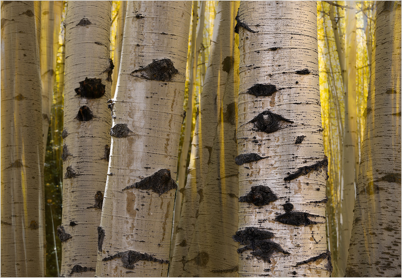I agree that the image needed more contrast on the aspen trunk in front. So I did additional dodging and burning on just the trunk to the right. I also changed the border to a gray to make it more subtle. I'm curious about what technique you used to edit the image. |