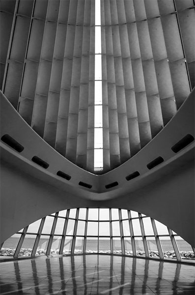 I like this image. Presenting it in B&W is a good choice. And choosing to show the image centered as you have, violating rule of thirds, was also well chosen. I like the symmetry that you have shown us.
